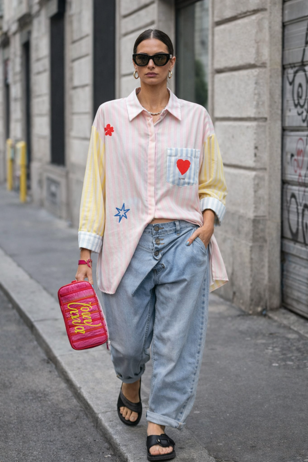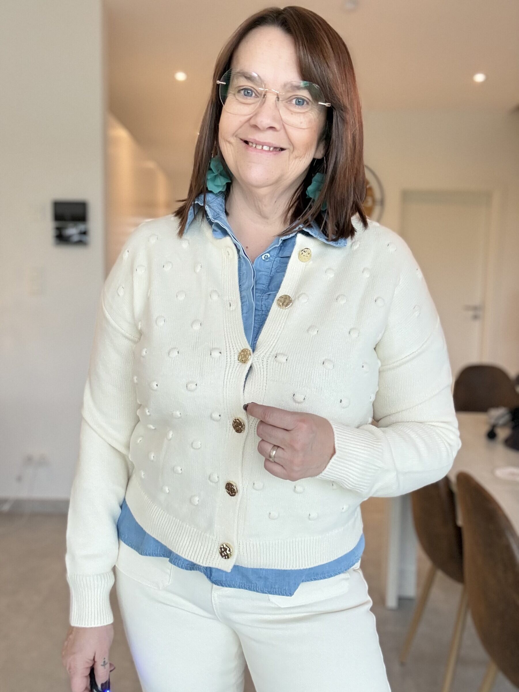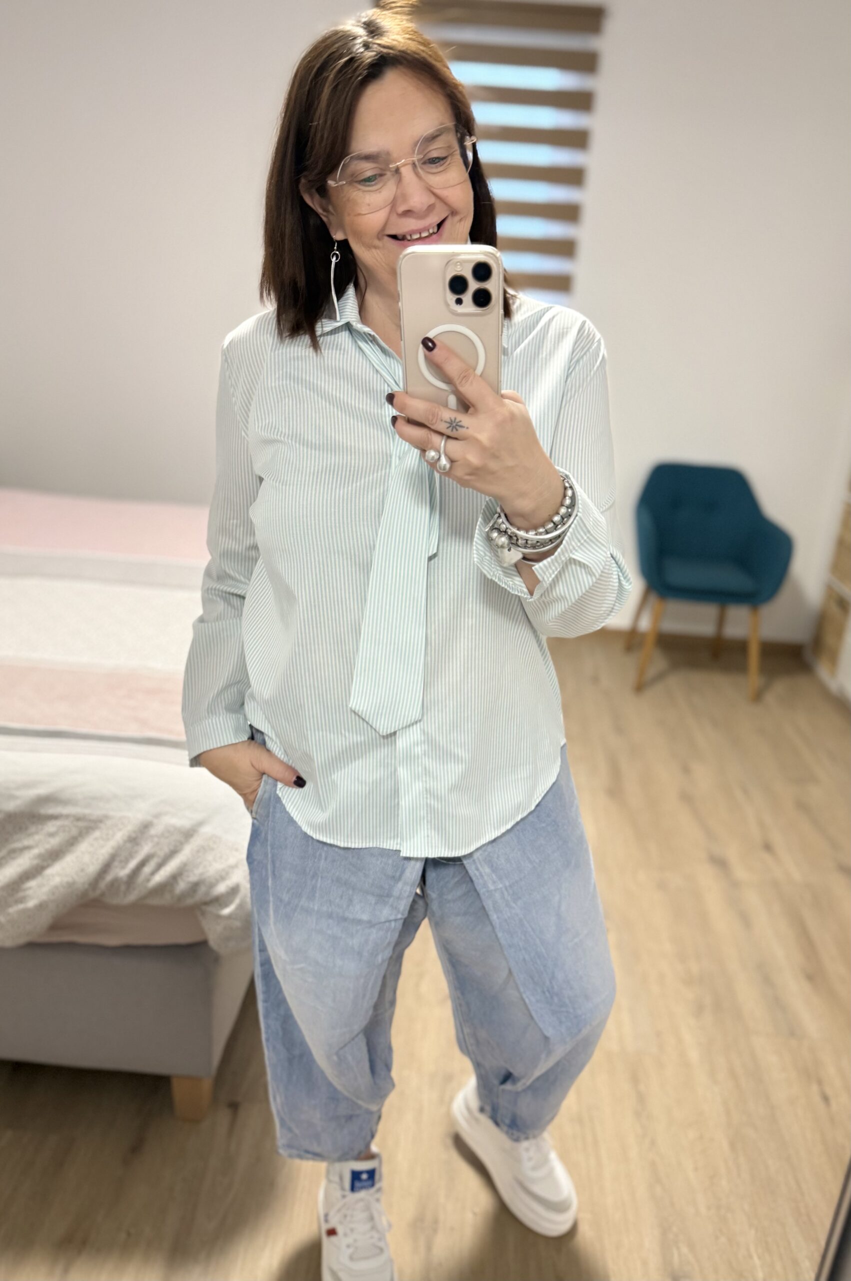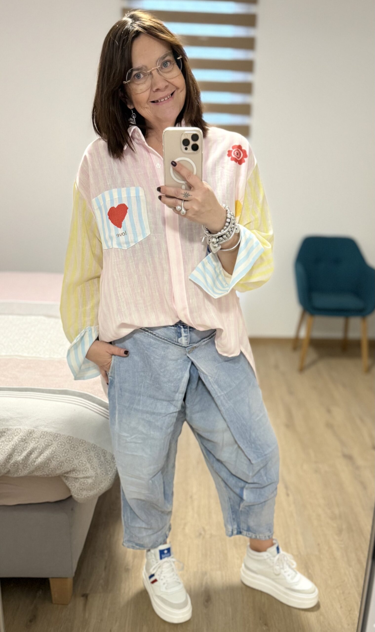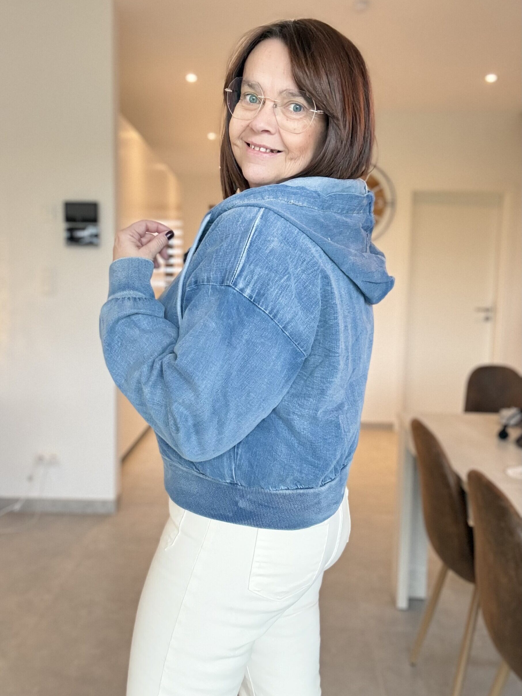 Béa mesure 1m68 et porte la Taille L loose pour son 40/42.