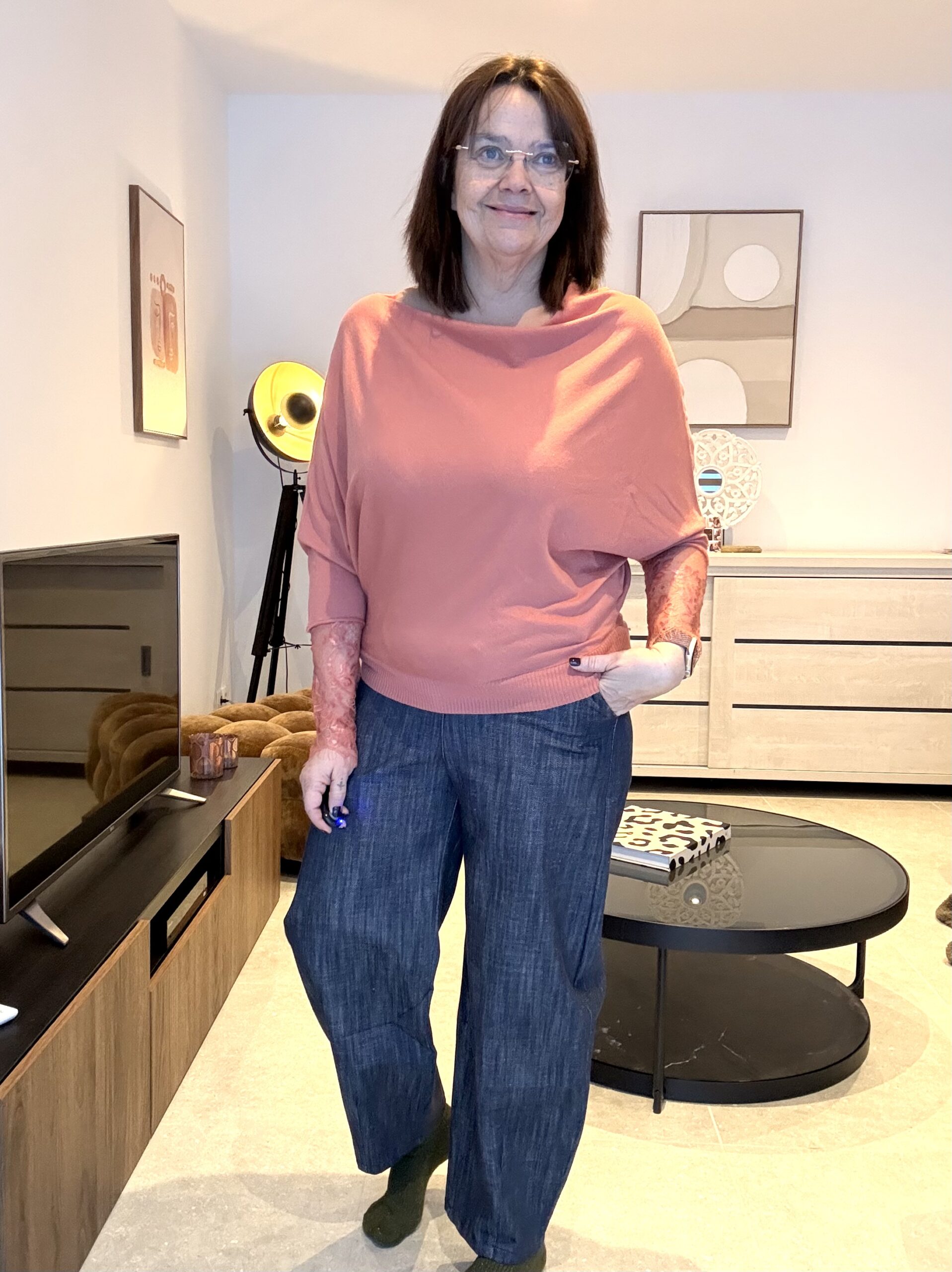 Béa mesure 1m68 et porte habituellement la taille 42. Ce modèle est trop petit pour elle.