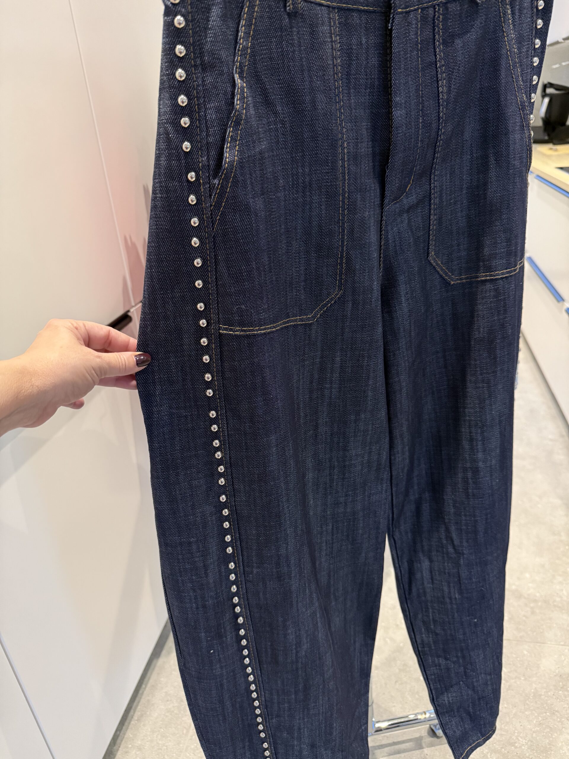 Pantalon surpiqûres, Clous rivetés.